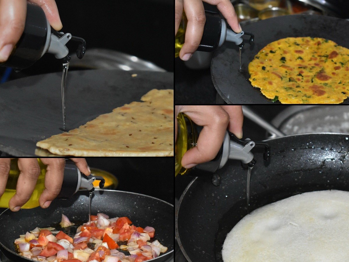 - Our bottles with integrated top makes the oil drizzles out slowly, helps you control portions of oil which is important to get that flavour touch of your salads and meals.